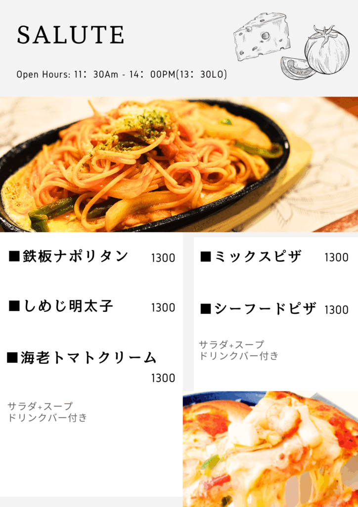 前菜 サラダ パン 肉料理 ピザorパスタ